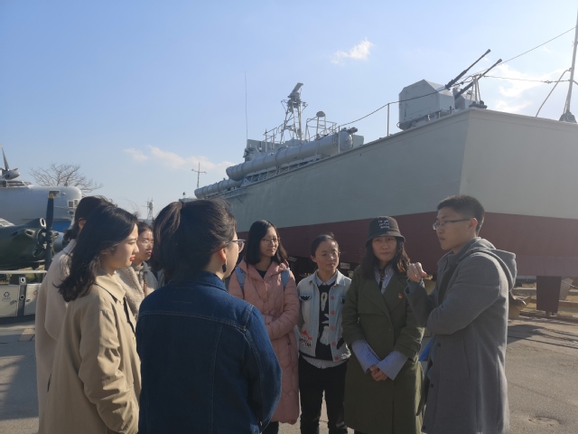 本次活动主要参观了101鞍山舰、105济南舰和531鹰潭舰三艘舰艇,感受我国海军的发展历程。鞍山舰作为人民海军的首艘驱逐舰,在中国海军史上留下了浓墨重彩的一笔。鞍山舰于1936年在海参崴的202船厂铺设龙骨,1940年下水,1941年建成加入苏联红海军太平洋舰队服役。鹰潭舰是053K型导弹护卫舰唯一的一艘,该舰是中国海军第一型装备防空导弹的水面作战舰艇,于20世纪70年代中期入列服役。济南舰是中国自行建造的第一艘驱逐舰,也是中国第一艘具备载机能力的驱逐舰。全体人员还瞻仰了周恩来总理在检阅驻青岛海军舰艇部队时乘坐的木壳鱼雷快艇,中华人民共和国成立35周年阅兵式上被检阅的巨浪一号潜地导弹,海军第一代水上飞机,以及人民海军首任司令员肖劲光大将乘坐过的伊尔-14飞机和红旗轿车。
