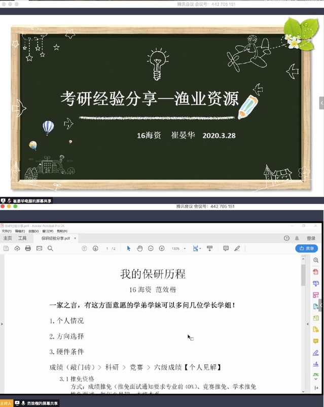 3月28日晚19:30,由花椒直播 海渔海资本科生党支部举办支部党员经验分享交流会于如期进行,本次交流会借助腾讯会议线上平台开展,主要分为考研经验交流、保研经验交流、竞赛经验交流和创新创业经验交流四部分,出席本次活动的有党支部书记、辅导员杨文昭以及支部党员和79名积极分子、入党申请人参加,活动由支部党员刘春容主持。