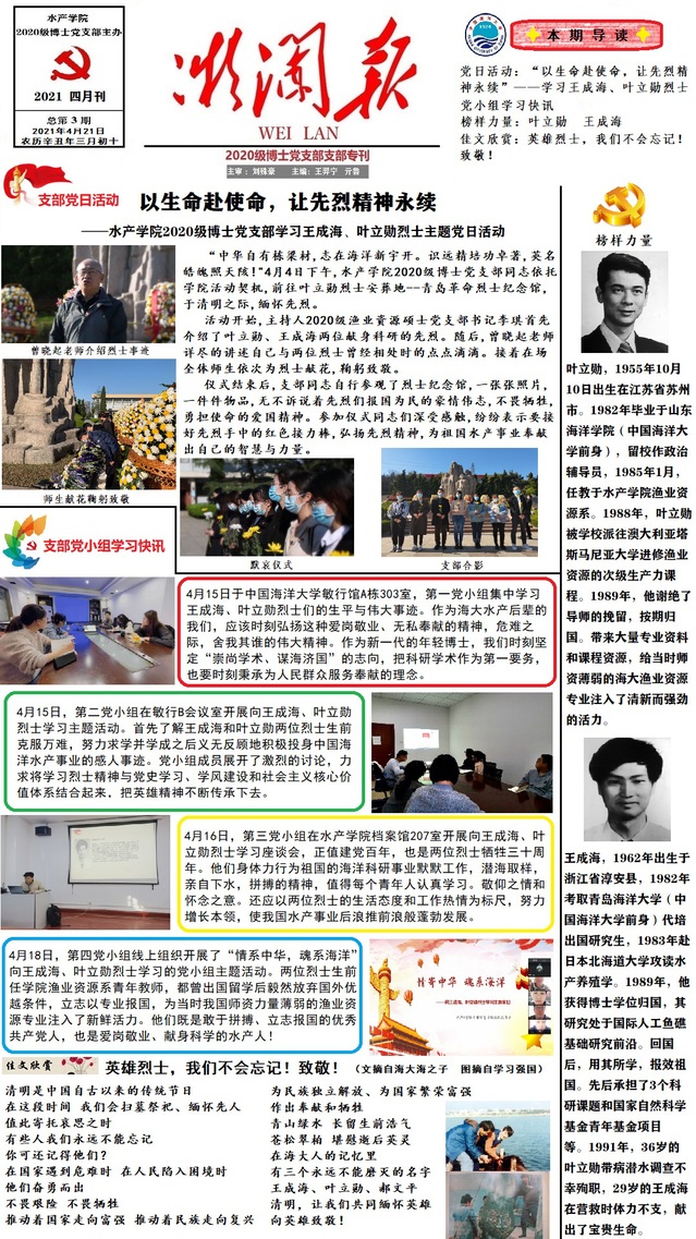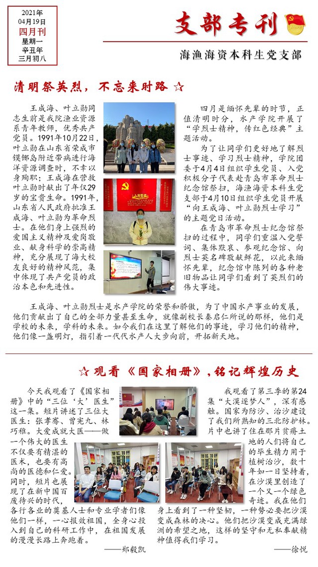 花椒直播 党史学习教育之“学烈士精神、传红色经典”支部专刊