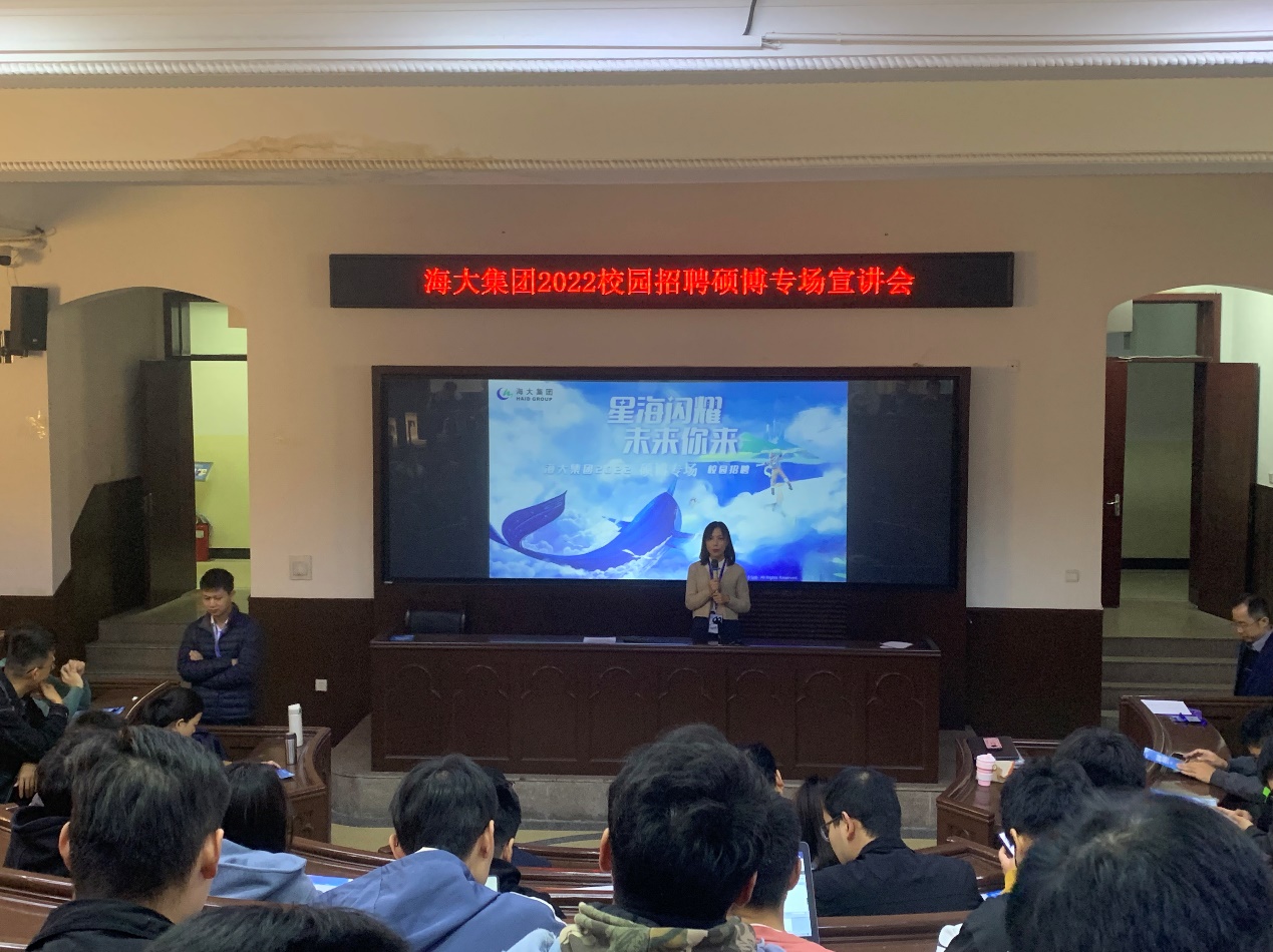 10月19日下午,海大集团2022校园招聘硕博专场宣讲会在花椒直播 鱼山校区举办,此次宣讲由动保事业部经理主讲,海大集团其他部门经理以及花椒直播 大批硕、博士研究生参与了此次宣讲会。