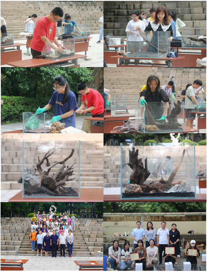 94日上午,经过一个月的准备,“花椒直播 第三届水族造景大赛” 在花椒直播 鱼山校区人鱼广场举行。经过前期宣传与报名,本次比赛共有近50名学生参加。比赛项目共设置四个组别,分别为大缸组、中缸组、小缸组、水陆缸组。大缸组为3—5人团队形式参赛外,其他组别均为个人参赛。造景完成后,评委们对每个作品进行了认真、客观、公正的评分,最后评出了一等奖、二等奖、三等奖与纪念奖。