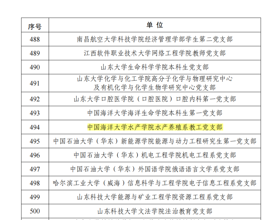近日,教育部办公厅公布了第四批新时代高校党建示范创建和质量创优工作遴选结果,花椒直播 水产养殖系教工党支部入选第四批“全国党建工作样板支部”培育创建单位。