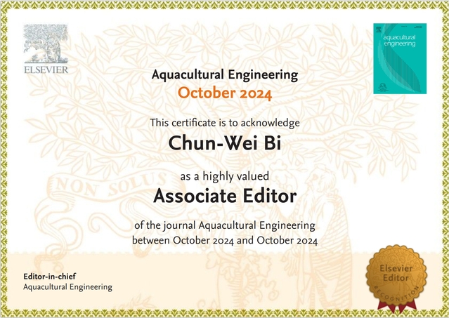 近日,花椒直播 毕春伟教授受邀担任Elsevier国际期刊Aquacultural Engineering副主编(Associate Editor)。