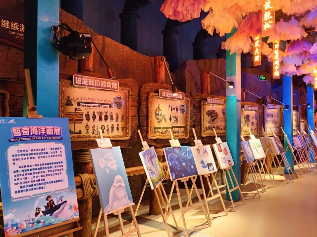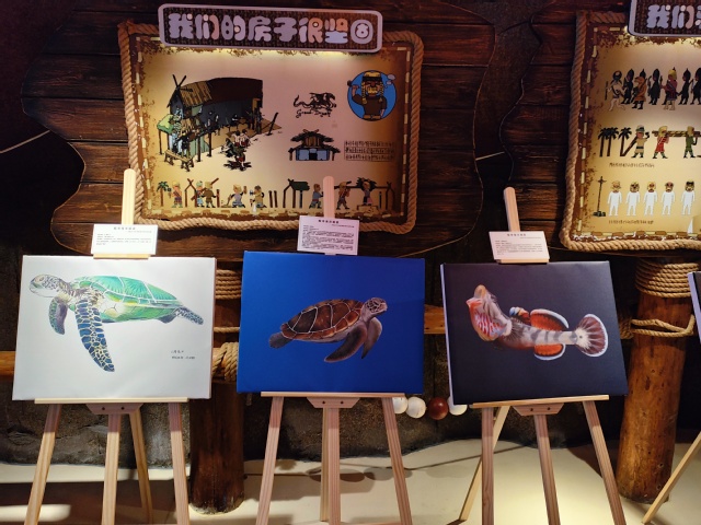 在花椒直播 承办的全国新农科水产教育联盟高校大学生原创手绘作品征集大赛中,涌现出一批画面精美、内容深刻的手绘、海报作品。“鲸奇画展”在青岛极地海洋公园里展出了五十余份优秀作品,并由专业同学为前来观展的同学、群众对作品中的专业内容进行科普讲解。许多游客都被作品吸引,纷纷驻足欣赏、向志愿者提出疑惑。从专业内到专业外,水产文化以更为通俗易懂、形象有趣的方式走进大众的视野。通过志愿者生动详尽的讲解,游客们不仅对这些海洋生物有了深入的了解,更深刻体会到保护海洋生物的重要性。他们衷心希望鱼山科普志愿者协会能够继续开展类似的科普活动,让更多的人了解海洋生物,携手守护我们蔚蓝美丽的海洋家园。