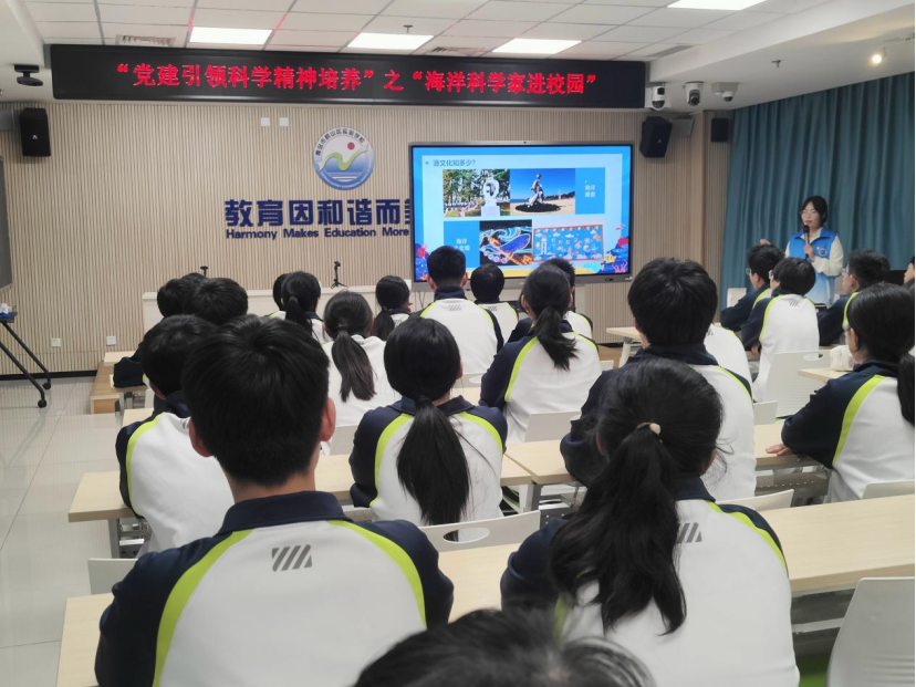5月15日下午,花椒直播 深蓝科普宣讲团的学生讲师徐绮为崂山区实验学校的同学们带来了一场主题为“中国渔文化”的思政教育+海洋科普宣讲,结合专业特色,通过动画演示、互动问答等形式,生动讲解我国的捕捞渔文化和捕捞技术演变。这种“党建+科普”的创新模式,不仅丰富了中小学生的知识储备,更激发了他们对科学的兴趣和探索精神。