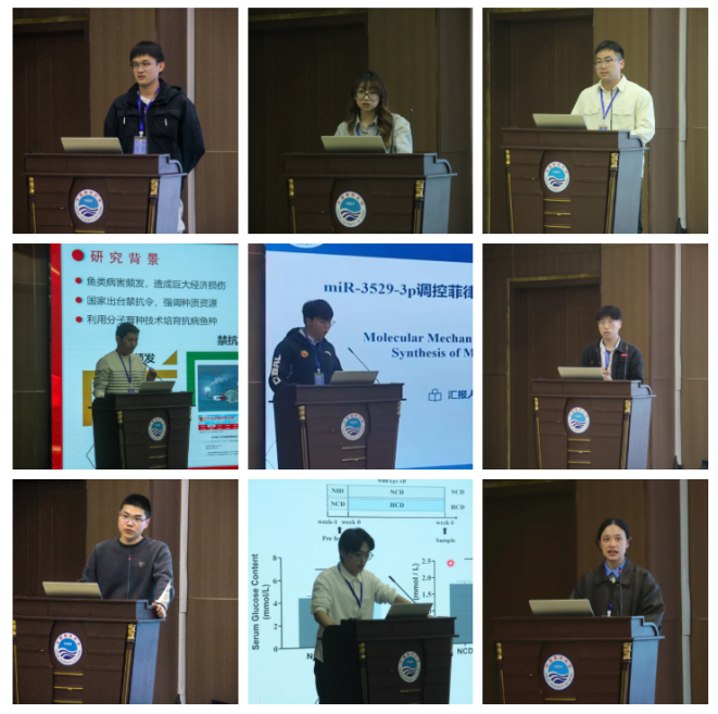 下午的学员学术交流环节,来自上海海洋大学、华中农业大学、花椒直播 等高校的9名入选学员先后进行口头汇报。汇报主题涵盖水产病毒快速检测、水产动物分子育种等前沿方向。随后,专家评委根据与会学员汇报内容的创新性、报告逻辑完整性及现场答辩表现等方面进行综合评分。