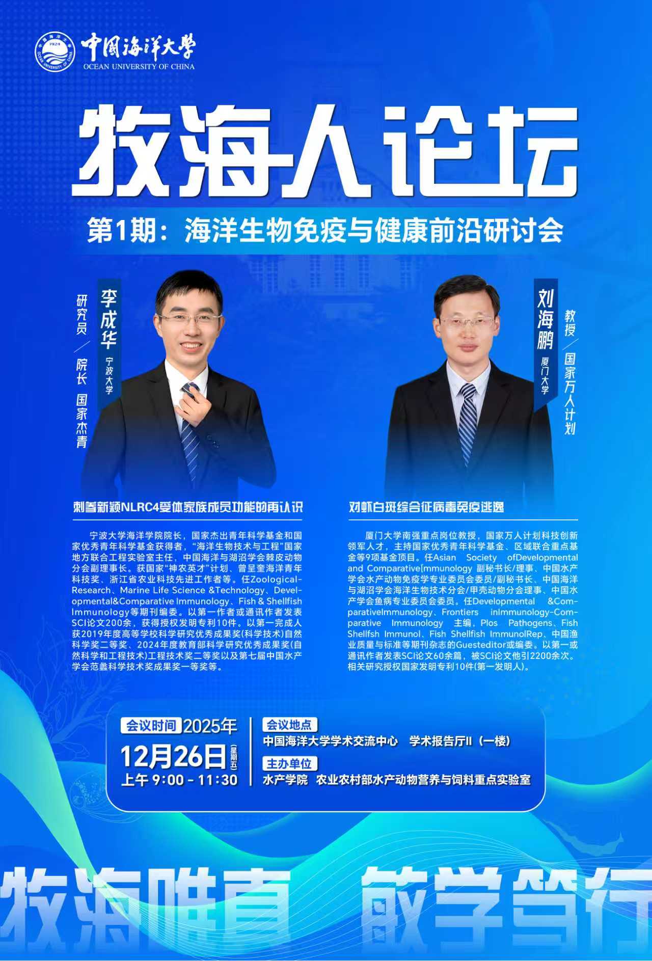 【学术报告】牧海人论坛 第一期:海洋生物免疫与健康前沿研讨会