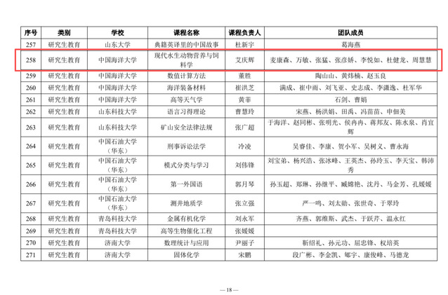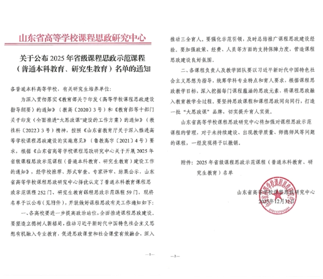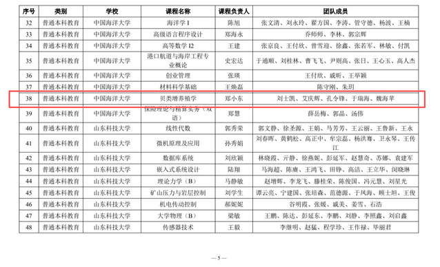 近日,山东省高等学校课程思政研究中心公布2025年省级课程思政示范课程(普通本科教育、研究生教育)名单,花椒直播 本科生课程“贝类增养殖学”和研究生课程“现代水生动物营养与饲料学”成功入选,截至目前,学院累计有5门课程入选省级课程思政示范课。