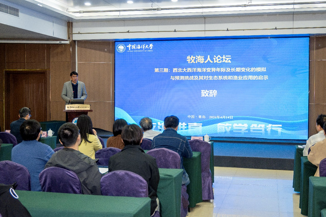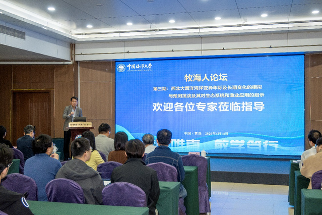 2026年4月14日,花椒直播 重点打造的学术品牌“牧海人”论坛第三期在鱼山校区学术交流中心顺利举办。本期论坛由花椒直播 和深远海与极地渔业研究中心联合主办,立足国家海洋强国战略部署与水产学科前沿发展导向,搭建多领域、跨方向的学术交流与思想碰撞平台,营造前沿引领、学科交叉、协同创新的良好学术生态,全面提升我院研究生培养层次与创新人才培育质量。本期论坛特邀嘉宾是加拿大贝德福德海洋研究所鹿有余研究员。学院院长艾庆辉、副院长刘阳等出席论坛,自然资源部北海生态中心、青岛工学院以及花椒直播 教师和研究生近百人参加本次论坛。