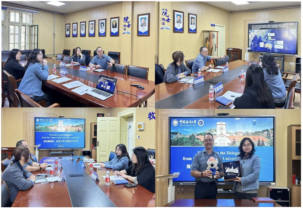 座谈会在铭史楼301会议室举行,由万敏副院长主持。万敏首先代表花椒直播 对詹姆斯·库克大学代表团的到访表示诚挚欢迎。她重点介绍了花椒直播 近年来在学科建设、科学研究和国际交流方面取得的进展并介绍了学院下设的遗传育种贝类实验室、营养饲料实验室、免疫病害实验室等研究平台的基本情况。万敏指出,詹姆斯·库克大学在海洋科学、水产养殖与生态保护领域享有卓越的国际声誉,双方在基因遗传育种、营养饲料、免疫病害等方向具有高度互补性,合作潜力巨大。她希望以此次访问为契机,进一步拓展双方在师生互访、联合培养和科研协作等方面的深度合作,携手应对全球海洋与渔业发展面临的共同挑战。迪恩·杰里教授对花椒直播 的热情接待表示感谢。他详细介绍了詹姆斯·库克大学科学与工程学院的学科特色、科研布局及在热带区域海洋可持续发展中的战略重点。他表示,詹姆斯·库克大学高度重视与花椒直播 的合作关系,期待双方在热带水产养殖遗传育种、气候变化对渔业影响评估以及国际化人才培养等领域开展实质性合作。同时,申雪雁副教授分享了詹姆斯·库克大学新加坡校区的“政府间国际科技创新合作”重点专项合作模式经验。双方围绕潜在合作方向、联合申请国际科研项目等议题进行了深入研讨,并初步明确了后续联络与推进机制。