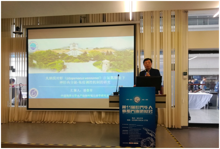 在本次研讨会上,潘鲁青教授以“凡纳滨对虾(Litopenaeus vannamei)在氨氮胁迫下神经内分泌-免疫调控机制的研究”为题,分析了对虾养殖业现状以及面临的问题,介绍了甲壳动物神经内分泌-免疫学研究进展,阐述了在氨氮胁迫下,凡纳滨对虾系统性神经内分泌调节轴(CHH)和区域性神经内分泌调节轴(生物胺)如何发挥免疫调控作用及内在分子机制,为甲壳动物在环境胁迫下神经内分泌-免疫学研究奠定了理论基础,也为保障我国对虾养殖业的健康发展提供了技术支持。报告得到了与会专家学者的高度认可。