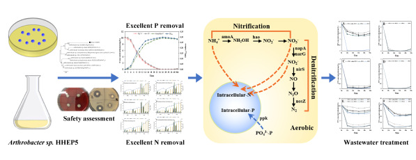 近日,生物资源技术领域国际权威期刊Bioresource Technology(中科院一区,IF=7.539)发表了本研究室的最新论文:Phosphorus and nitrogen removal by a novel phosphate-accumulating organism, Arthrobacter sp. HHEP5 capable of heterotrophic nitrification-aerobic denitrification: Safety assessment, removal characterization, mechanism exploration and wastewater treatment(DOI:10.1016/j.biortech.2020.123633)。