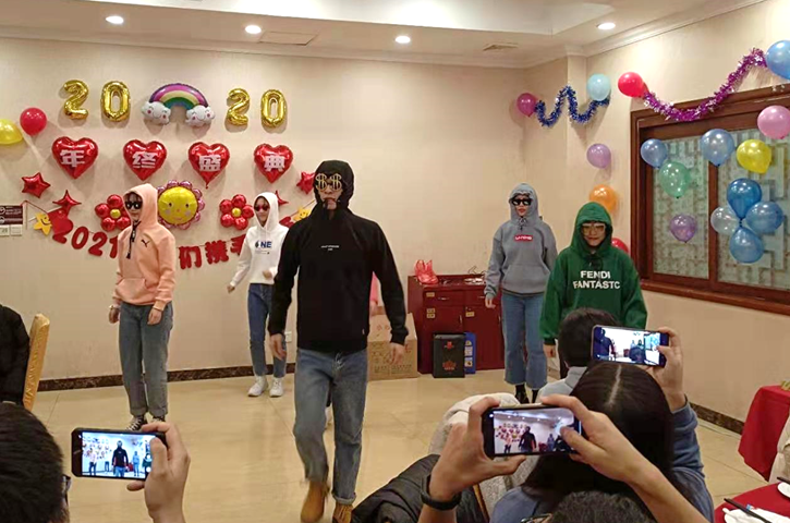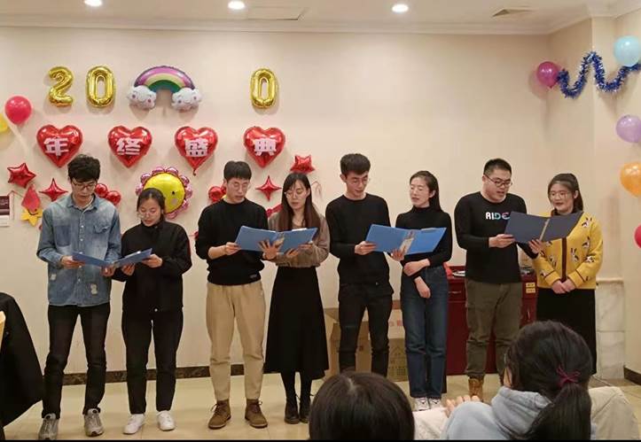 在研究室庆新年活动中,2020级硕士研究生、全体博士研究生以及2018级硕士研究生为大家呈现了舞蹈、歌曲和诗朗诵节目,精彩纷呈、笑声不断,晚宴期间穿插抽奖互动和你比我猜等游戏,大家在欢声笑语中举杯共庆新年。