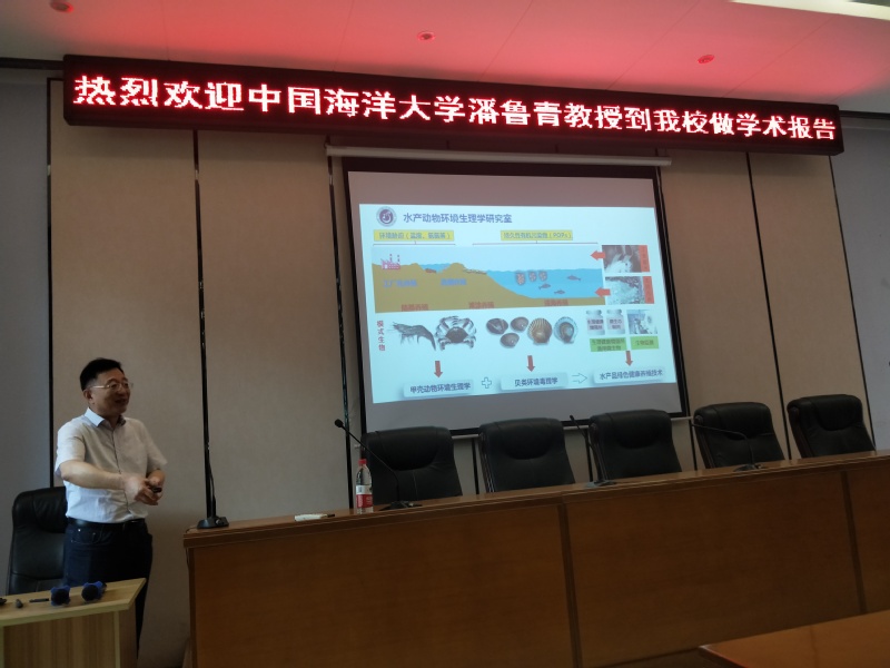 师生做了《甲壳动物神经内分泌-免疫生理调控机制的研究进展》学术报告,从动物进化角度,阐述了无脊椎动物、脊椎动物神经内分泌-免疫防御的分子机制,为甲壳动物免疫学的研究提供了新思路,得到了师生的一致好评。4月10日上午,在广东海洋大学孙成波教授、刘泓宇教授陪同下,实地考察了广东海洋大学东海岛养殖基地,并就共同承担的广东省重点领域研发计划项目《海水池塘生态工程化养殖技术与模式》进行了商讨,制定了下一步研究计划。