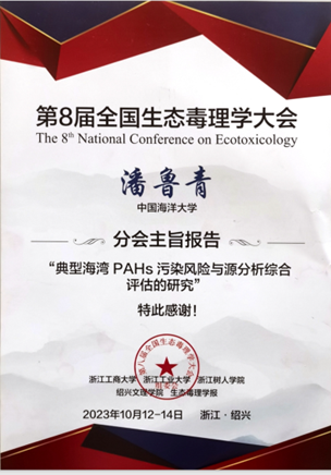 20231012日至14日,第八届全国生态毒理学大会在浙江绍兴隆重召开。本次大会由浙江工商大学、浙江工业大学、浙江树人学院、绍兴文理学院和中国科学院生态环境研究中心《生态毒理学报》编辑部共同主办。来自全国各地的生态毒理学相关领域专家、学者、研究生、企业代表参加了会议,大会参会人数超1000余人。研究室潘鲁青教授和苗晶晶副教授均受邀参加了此次大会。
