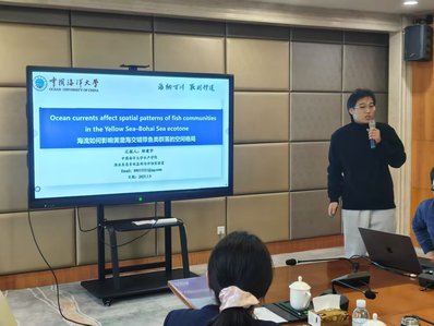 下午的会议由张崇良副教授主持。观测站博士后王琨作了题为《“信息有限”下的渔业资源评估指南》的报告;观测站博士后李璐颖作了题为《长江口邻近海域全氟化合物的分布特征及环境行为》的报告;在读博士生邹建宇作了题为《海流如何影响黄渤海交错带鱼类群落的空间格局》的报告;在读博士生梁耀威作了题为《渔业资源评估的数据优化:从站位设计、信息船采样到多源数据融合》的报告。