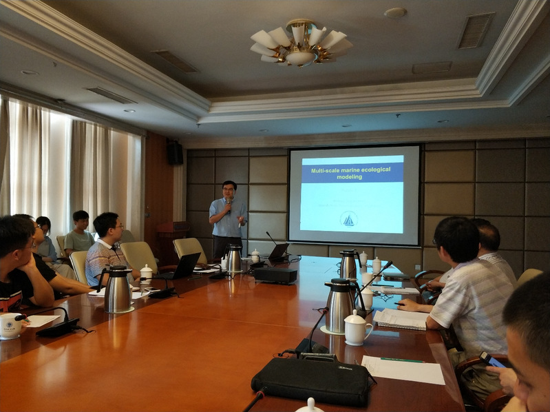 7月18日下午,国境外文教专家2018年度系列讲座:美国Rubao JI教授系列讲座在鱼山校区学术交流中心青岛厅举行。讲座邀请伍兹霍尔海洋研究所(WHOI)研究员季如宝教授,为师生带来题为“Multi-scale marine ecological modeling”的讲座。花椒直播 田永军教授主持讲座。