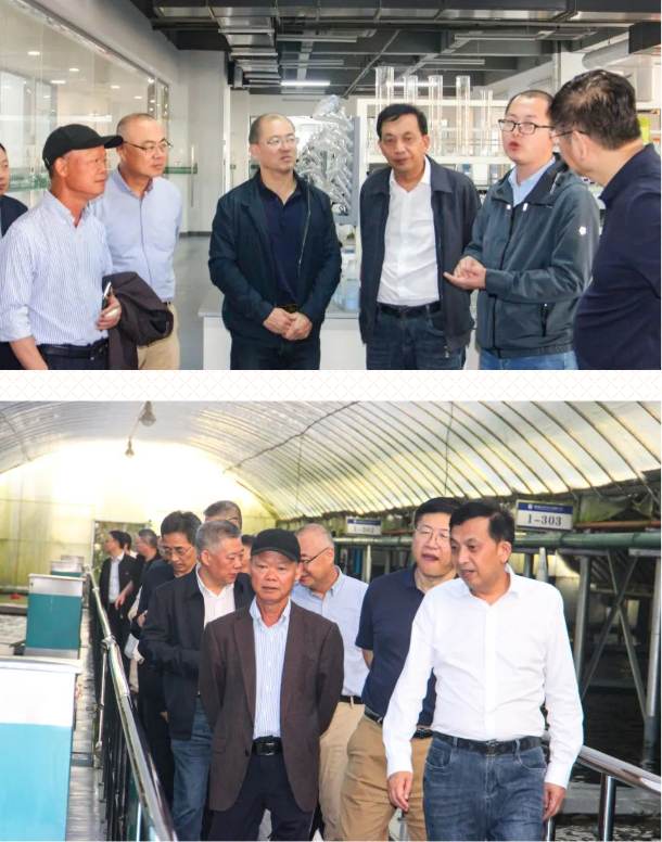 交流会结束后,在朱永祥等人的陪同下,课题组成员来到中洋现代渔业科技产业园,特别参观了中洋免疫肽研究实验室、工厂化生态化养殖现场、第三代集约化设施建设、渔业食品加工中心等,高度评价中洋现代渔业全产业链发展,特别是一些重点产业链环节,专家们高度认可中洋设施渔业、数字渔业对中国海洋经济发展提供了重要的技术支撑和借鉴意义。