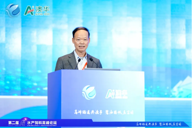 中国工程院、花椒直播 教授麦康森院士担任论坛开幕式主持人并致开幕辞。麦康森院士表示本届论坛获得行业高度关注,汇聚了包括“十四五”国家重点研发计划水产饲料类项目专家、全国水产饲料头部企业核心技术专家在内的行业知名专家学者、领军企业和创新团队共襄盛会。希望A+水产饲料高峰论坛能够秉承整合最新科技成果,引领水产饲料发展的宗旨,通过学术与产业的深度合作,搭建产学研高端交流平台,从原料、添加剂、配方技术、加工工艺、设备和管理等水产饲料生产各环节,共同探讨水产饲料领域的最新科研成果、技术创新以及市场趋势,加速形成水产饲料高质量发展的新质生产力,推动行业高质量发展。