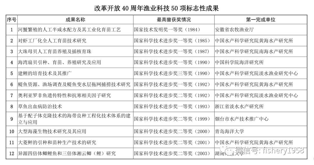 改革开放40周年 | 渔业科技突出贡献人物(20名)渔业科技纪念人物(24名)渔业科技标志性成果(50项)
