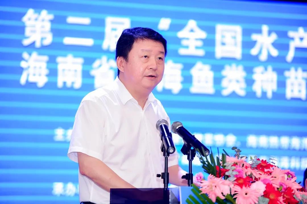 农业农村部全国技术推广总站胡红浪副站长致词 中国工程院林浩然院士、中国科学院桂建芳院士因故不能亲临论坛现场,但分别以视频贺词和贺信的方式祝贺大会顺利举行。 致词中提到,2020年6月1号,《海南自由贸易港建设总体方案》正式发布。《方案》中明确提出,要发挥国家南繁科研育种基地优势,建设全球热带农业中心和全球动植物种质资源引进中转基地。在此背景下,今天水产种苗业的各位专家、学者和企业家齐聚一堂,势必为我国水产养殖种业发展出谋划策。 水产种业是推进水产养殖业绿色高质量发展的最重要、也是最基础的支撑保障。海南省拥有良好的水质环境资源,优越的海洋气候资源为发展水产苗种产业提供了得天独厚的自然条件,是我国水产种业的资源宝库。海南省在2019年产各类水产苗种1762亿尾,大部分供应国内其它省区市外,还游向国际市场,深受广大用户青睐,可以说海南的水产种苗产业将是一个千亿的产业。 目前,三亚市乃至海南省渔业都处于转型升级的重要阶段,海南渔业要往岸上走,往深海走,往休闲渔业走,而水产南繁种业任重道远。“全国水产南繁种业发展论坛”将成为水产南繁、水产育种、水产种业发展的重要平台,成为水产领域、政府领导、专家学者、企业家及学生共同交流、学习、探讨的载体。