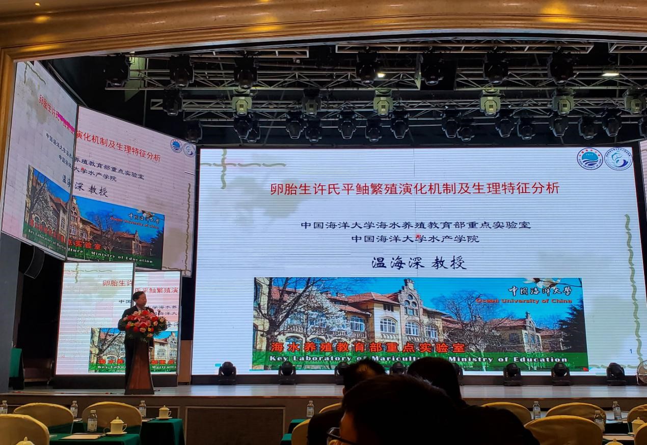 、南方海洋科学与工程广东省实验室(湛江)、广东省名特优鱼类生殖调控与繁育工程技术研究中心、广东省水生经济动物良种繁育重点实验室等单位承办,来自全国28家高校、科研院所的200多名代表参加了本次大会,其中包括刘少军院士、陈松林研究员、胡炜研究员等。本实验室温海深教授和吕里康博士应邀参加此次大会。 本次大会主要就我国主要水产鱼类育种和生殖内分泌调控等主题进行报告和讨论。本实验室温海深做大会报告,题目为:卵胎生许氏平鲉繁殖演化机制及生理特征分析。大会决定,2022年由花椒直播