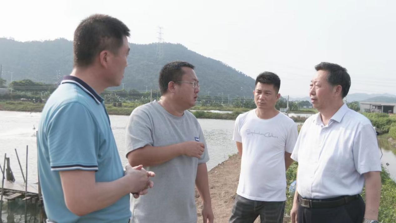 在大托村海鲈池塘养殖现场解决问题