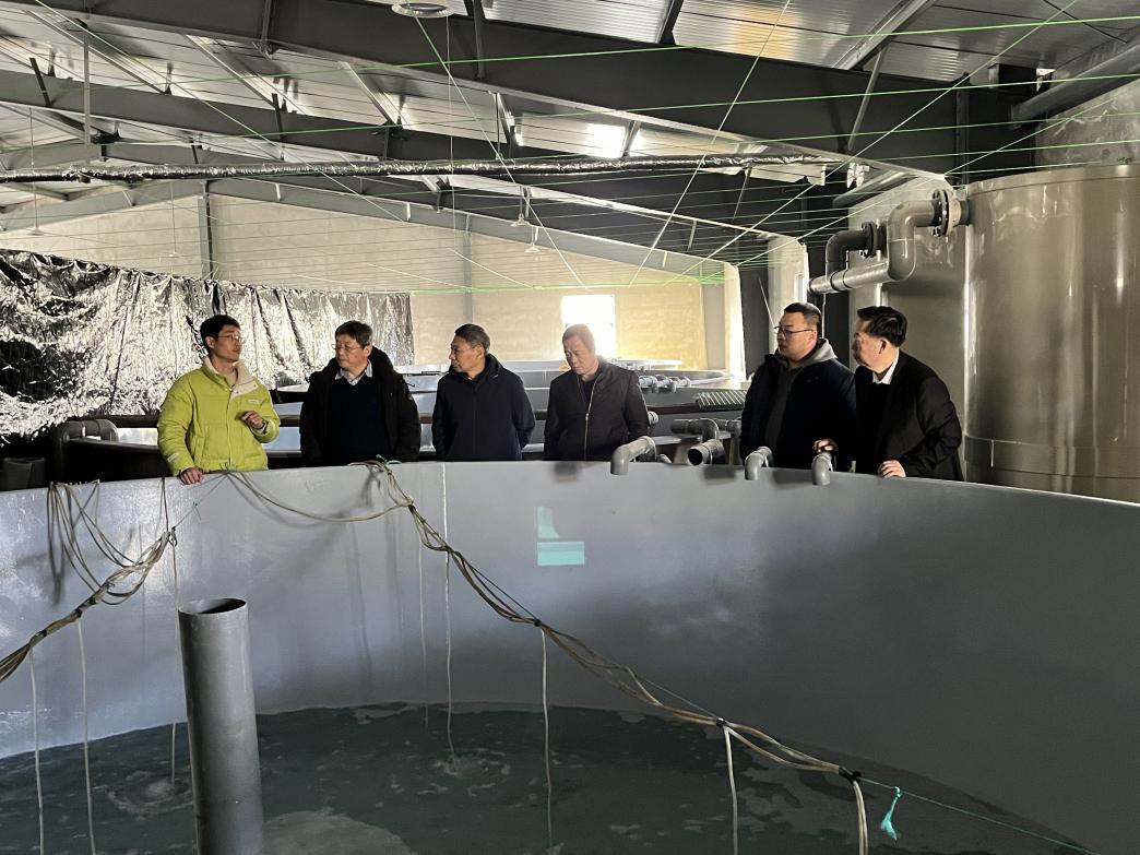 上午,温海深教授一行前往研究员养殖基地-咸祥渔业科技创新基地调研,一行人参观了基地新翻修的循环水养殖车间,并对循环水系统的设计、水处理能力和效率、尾水处理、循环水养殖技术、养殖病害防控等方面进行了现场讨论,调研团一行对各项问题提出了改善意见,为基地的循环水系统提供了改良的方向。调研团一行还参观了基地的大黄鱼养殖车间。