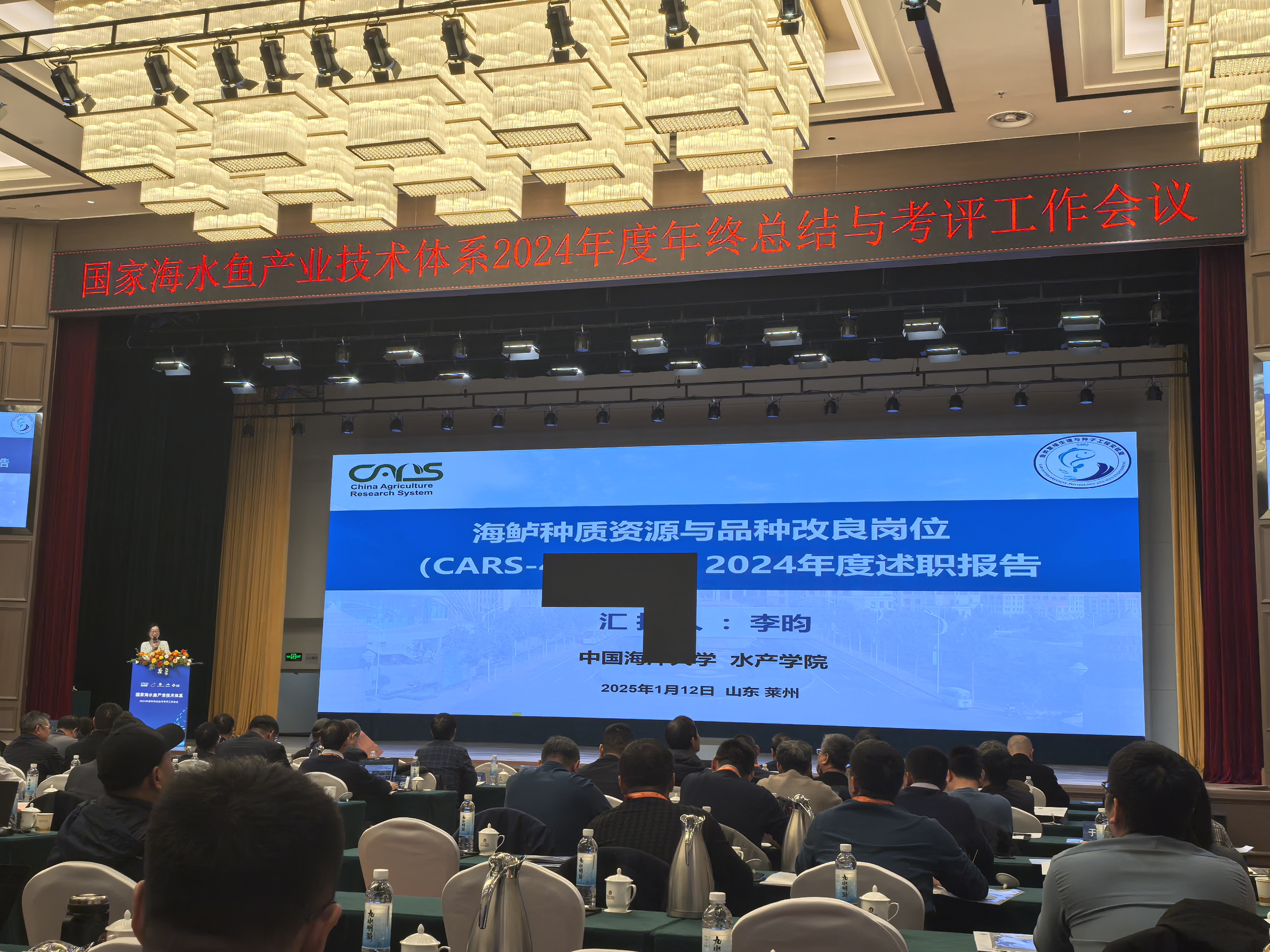 111-14日,国家海水鱼产业技术体系2024年度总结与考评工作会议于山东莱州隆重开幕。农业农村部渔业渔政管理局、农业农村部科学技术司、山东省农业农村厅、烟台市人民政府、烟台市海洋发展和渔业局、莱州市人民政府、莱州市海洋发展和渔业局、中国水产科学研究院、中国水产科学研究院黄海水产研究所等有关单位领导,体系顾问专家,地方体系创新团队以及海水鱼体系全体岗位科学家、综合试验站站长、团队成员共计160余人参加会议。本团队温海深教授、李昀教授、王海亮实验师参加本次会议。