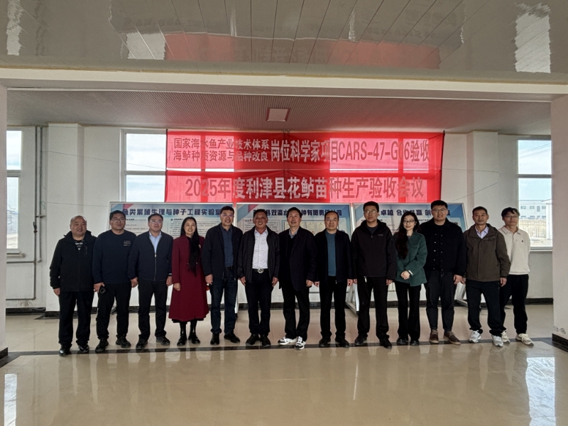 组织山东省海洋科学研究院、东营职业学院、河口区农业农村局、利津县农业农村局,利津县科技局、利津县刁口乡有关专家和领导,在利津县双瀛水产苗种责任有限公司养殖基地,对国家海水鱼产业技术体系“海鲈种质资源与品种改良”岗位科学家项目(CARS-47-G06)和国家重点研发计划“海洋农业与淡水渔业科技创新”专项“北部湾陆海接力智慧渔场养殖装备与新模式”课题三“陆基工厂化鱼贝高效繁育与健康养殖技术”(2022YFD2401203),2024年度花鲈苗种生产进行现场验收。 2024年度利津双瀛基地保有黄渤海来源的花鲈亲鱼225尾(均重3.20 kg),后备亲鱼313尾(均重2.18 kg)。2024年11月15日开始受精卵孵化,经142天培育,获得健康花鲈鱼苗22万尾,平均体长5.53cm,平均体重3.10g,达到项目年度指标。 项目验收后,花椒直播