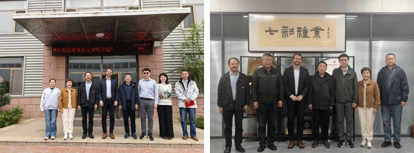 10月26日上午,在黄六一教授陪同下,Hosaas总监一行从青岛市内出发,前往青岛宝裕丰海洋科技有限公司(平度)进行交流访问。双方就公司在海洋牧场装备制造、近海养殖网箱及智能养殖系统等领域内的技术创新展开了深入探讨;随后实地考察了公司的设备制造车间、成果展示厅。当日下午,一行人员继续前往青岛七彩种业科技有限公司,详细了解了公司在水产种质资源保护与创新方面的成果,就水产育种技术与养殖模式的可持续发展交换了宝贵意见。