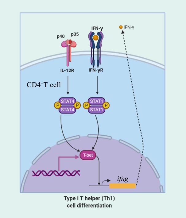 2.T-betCD4+ T细胞IFN-γ分泌和分化为Th1细胞过程中的作用示意图