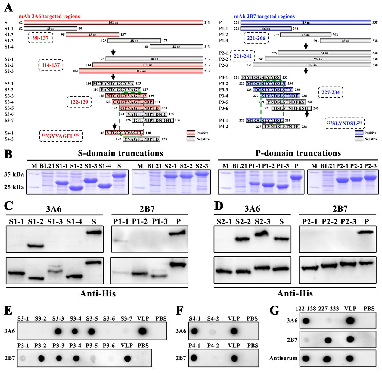 神经坏死病毒(NNV)是一种世界范围内流行,严重危害多种海水和淡水鱼类的传染性病原。衣壳蛋白(CP)是该病毒唯一具有致病性和抗原性的结构蛋白,然而有关其免疫优势表位或中和功能位点的公开信息仍然极其缺乏。基于前期基础,本研究利用特异性抗石斑鱼NNV(RGNNV)CP的中和单克隆抗体,结合部分重叠的重组截短蛋白以及合成肽库,在CP中鉴定出两个分别位于S-domain和P-domain的最小B细胞表位122GYVAGFL128和227SLYNDSL233。氨基酸定点突变分析表明,Y123、G126、L128和L228、Y229、N230、D231、L233分别是介导表位与相应抗体直接互作的关键氨基酸残基。一系列生物信息学及系统进化分析显示,227SLYNDSL233在所有NNV基因型中几乎完全保守,暴露在病毒粒子表面突起的顶端周围,具有良好的免疫原性;而122GYVAGFL128在RGNNV以外基因型中具有大量抗原漂移,埋藏在病毒粒子壳区与突起连接处的凹槽中,免疫原性较差。体外封闭实验表明,SLYNDSL合成肽可减少GF-1细胞表面RGNNV的附着,进而抑制病毒的复制增殖,而GYVAGFL合成肽则无此封闭效果。综上所述,227SLYNDSL233是一个受体结合位点,相应抗体与之结合可阻断病毒粒子与易感细胞的粘附,进而产生中和效果;而122GYVAGFL128可能是一个稳定病毒粒子构象的脆弱区域,相应抗体与之结合后可破坏病毒的天然结构,进而产生中和效果。研究结果丰富了人们对NNV抗原分布模式和中和分子基础的理解,为推动研发针对NNV的高效抗病毒药物提供了新的靶点。