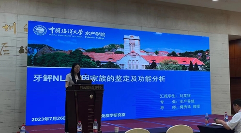 博士生刘英钦做了《牙鮃NLR基因家族的鉴定及功能分析》的学术专题报告。