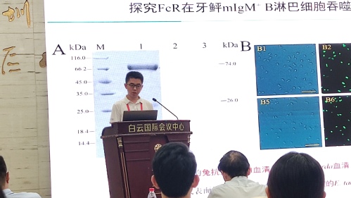 博士生郝彦博做了《FcR在调控牙鲆mIgM+ B淋巴细胞吞噬活性中的作用研究》的学术专题报告。