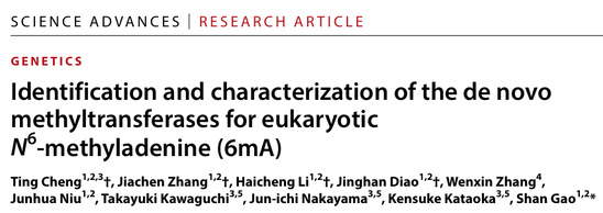 17.   Wang, Y., Nan, B., Ye, F., Zhang, Z., Yang, W., Pan, B., Wei, F., Duan, L., Li, H., Niu, J., Ju, A., Liu, Y., Wang, D., Zhang, W., Liu, Y., and Gao, S., Dual modes of DNA N6-methyladenine maintenance by distinct methyltransferase complexes. Proceedings of the National Academy of Sciences, 2025. 122(3): e2413037121.