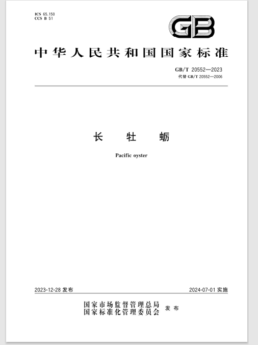 贝类遗传育种研究室主持修订的国家标准《长牡蛎》(GB_T 20552-2023)正式实施